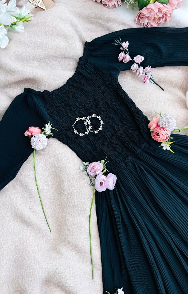 Dusky Black Smoky Crepe Twirl Dress