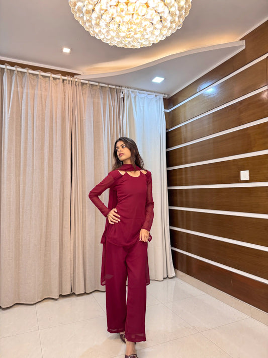 Scarlet Maroon Back Tie Kurta Set