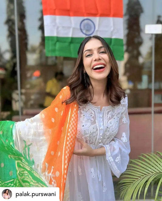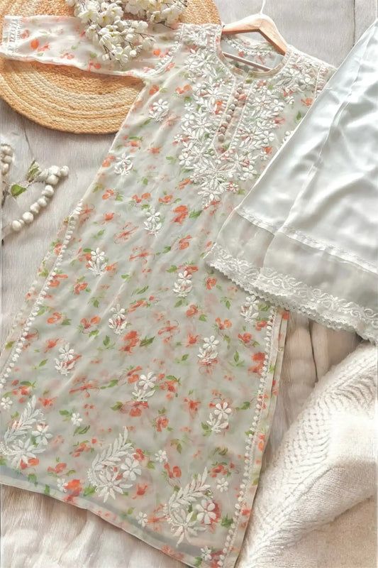 Palak White Noor Mirror Chikankari