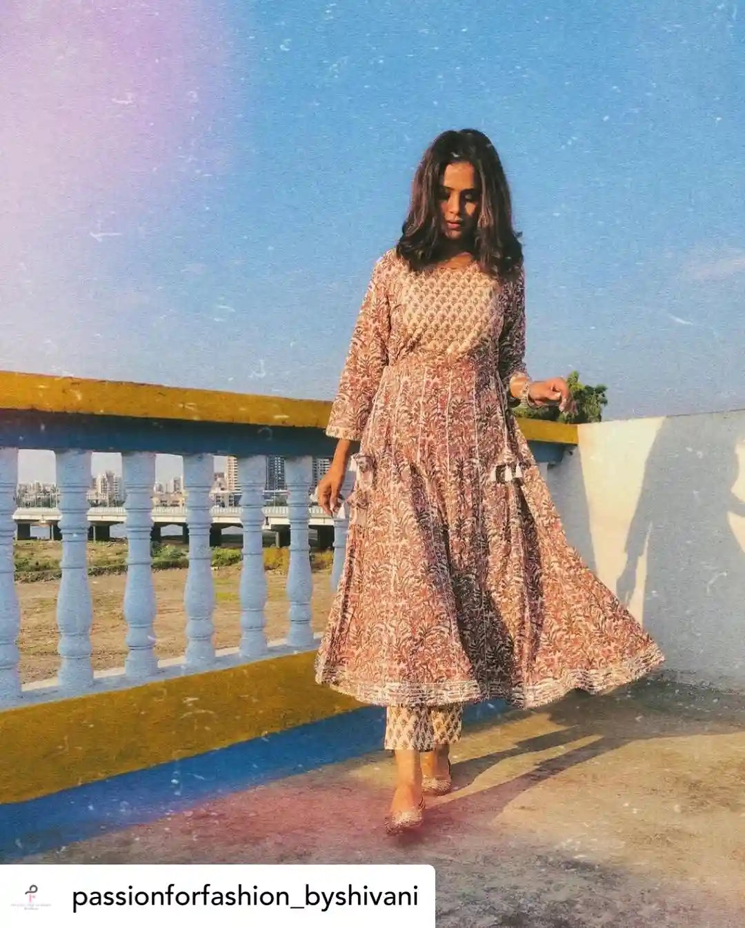 Embrace the freshness of a dew-kissed day in our Jaipuri Meher Anarkali Suit Set, where the delicate fabric meets ethereal charm for a look that's as enchanting as the first light of day.