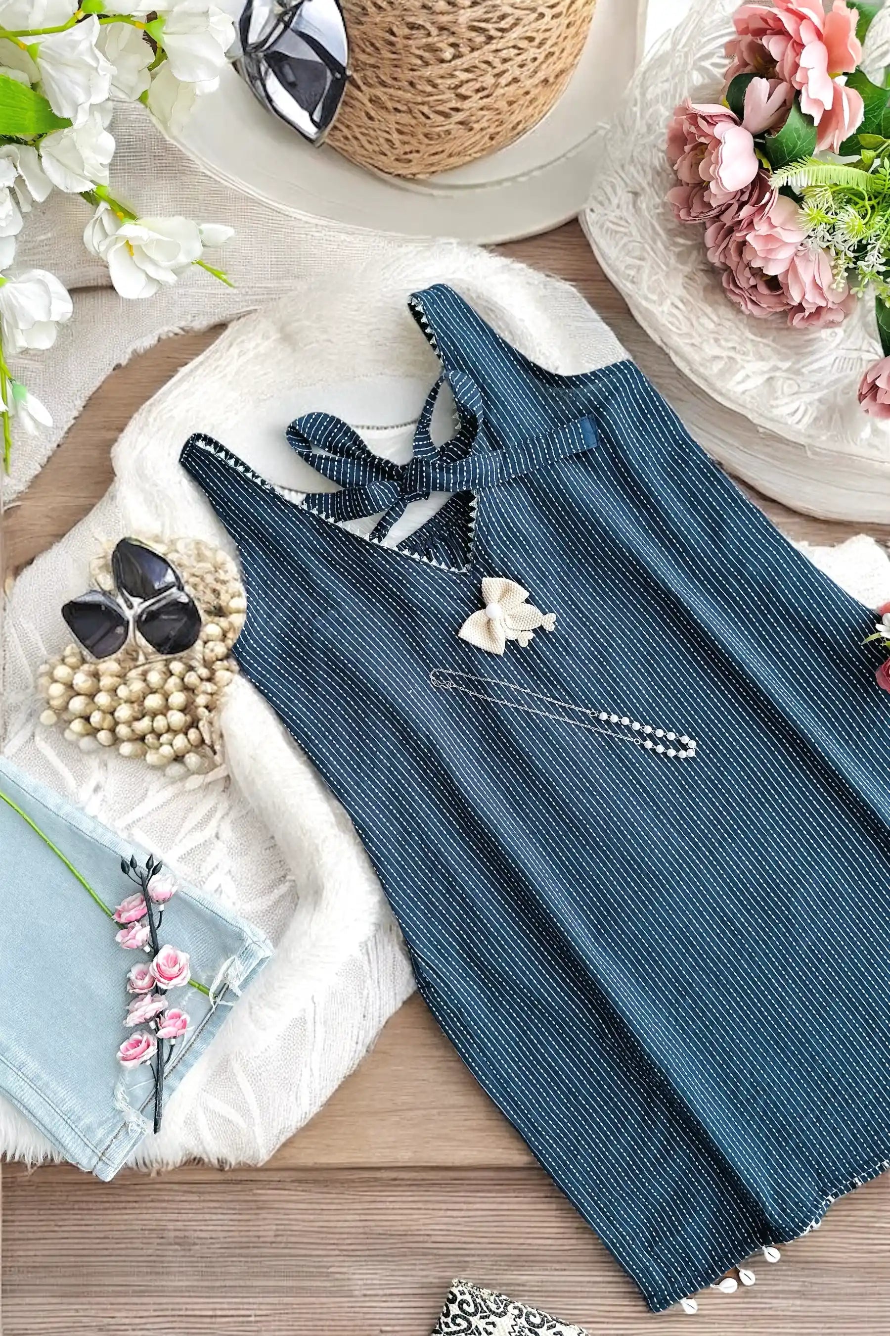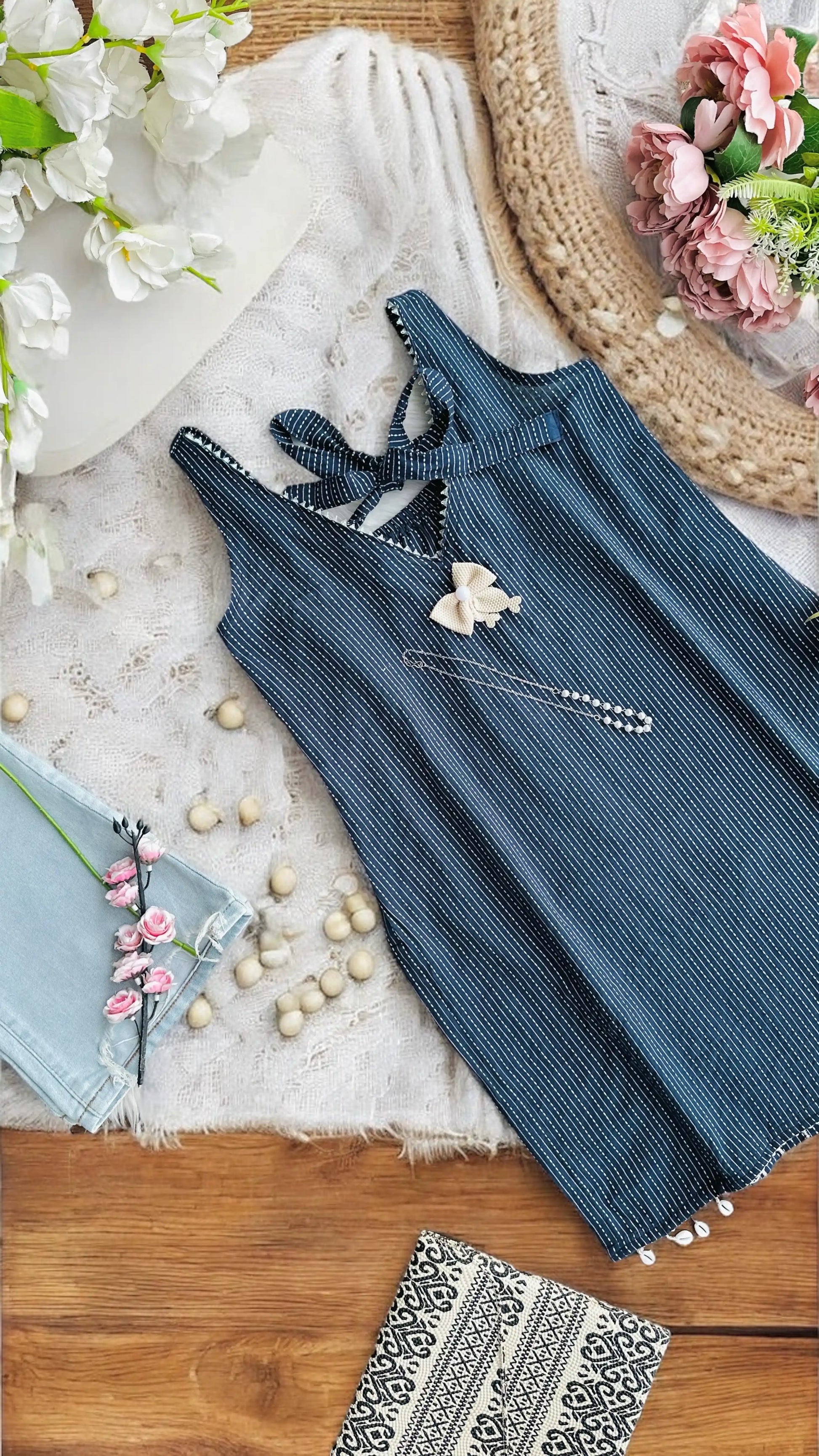 Effortlessly stylish and breezy, Our Midnight Stripes Short Kurta is a perfect blend of comfort and charm. Crafted in a soft striped fabric, it features a delicate tie-up back. Pair it with denim, statement jewellery, or flowy bottoms for a versatile look that transitions seamlessly from casual day outings to evening gatherings.