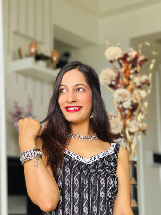 Elevate your style with our Pearl Grey Jaipuri Frill Dress. This chic and trendy dress combines sophistication with a touch of playfulness. The pretty jaipuri print adds warmth to your look, while frills bring a modern twist. Made with high-quality rayon fabric, this dress ensures both comfort and style. Perfect for a night out or special occasions!