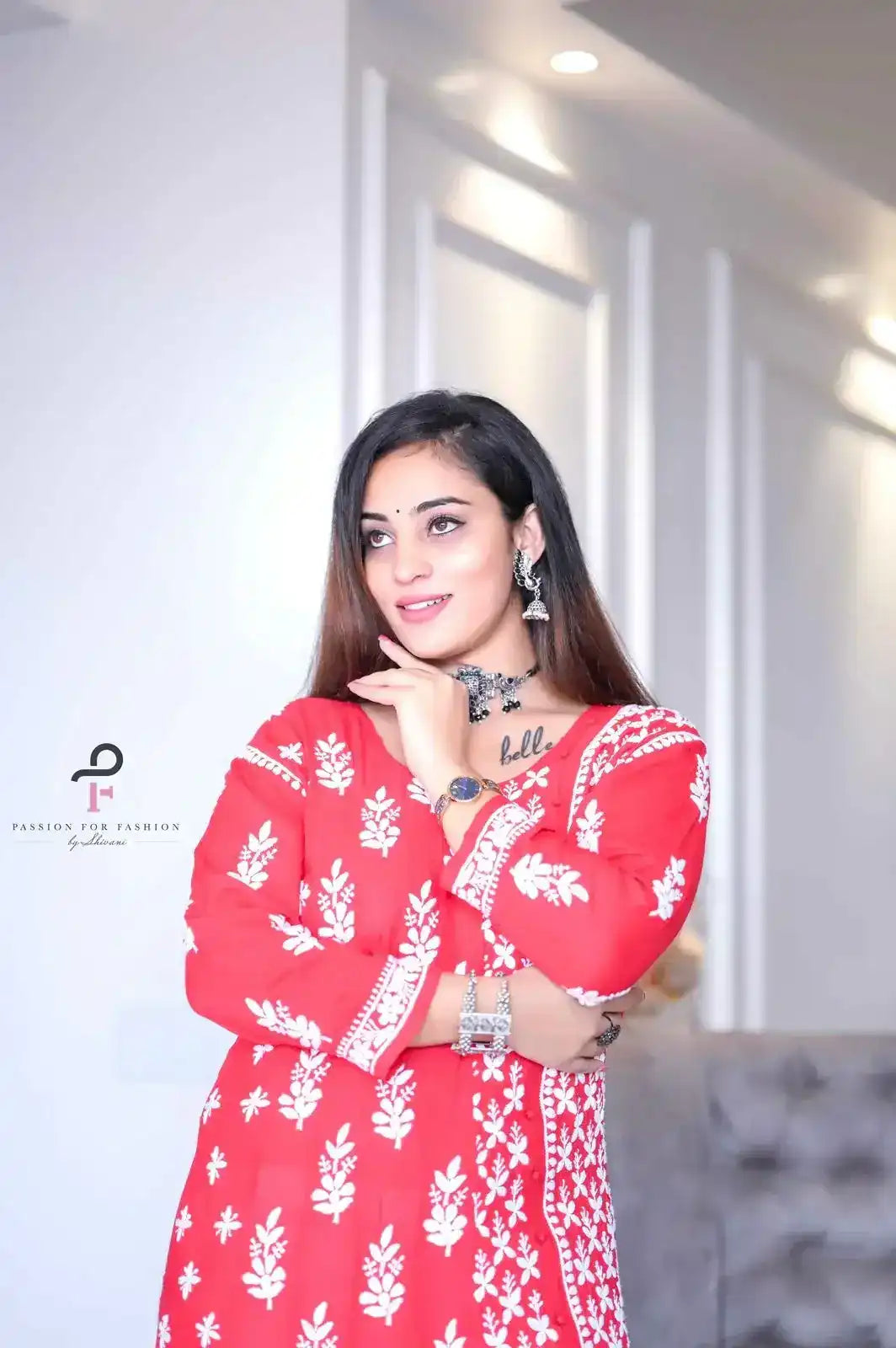 Our Most Loved Scarlet Red Meher Chikan Embroidered Anarkali is crafted from luxurious modal fabric and sculpted to flatter. This elegant ensemble is a classic staple built to last. Artfully infused with sublime style, it evokes a look of refined luxury.
