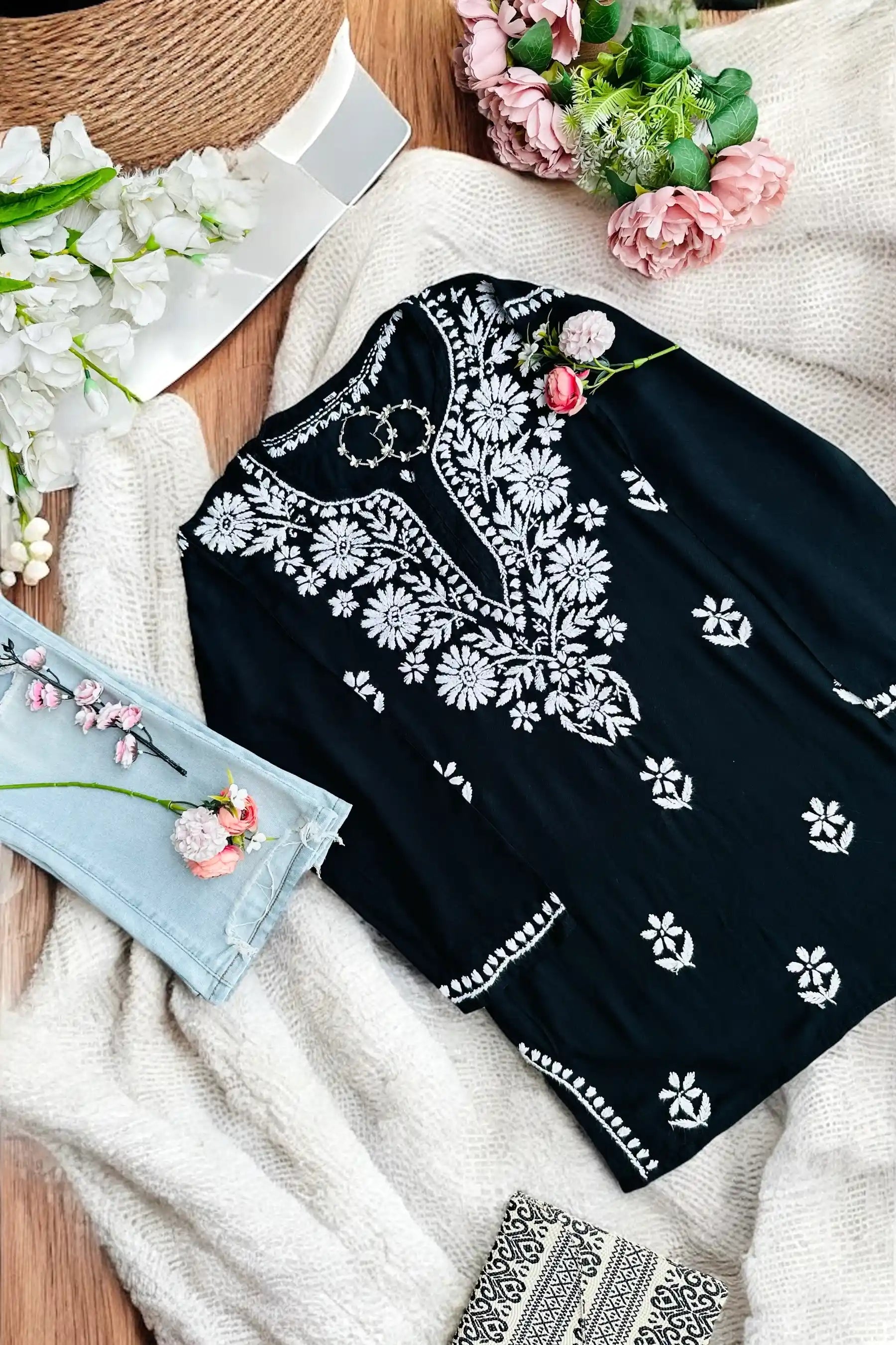 We all have some casual days ,movie days or days with friends, bringing to you our short Gulzar chikan kurta perfect for days like these.